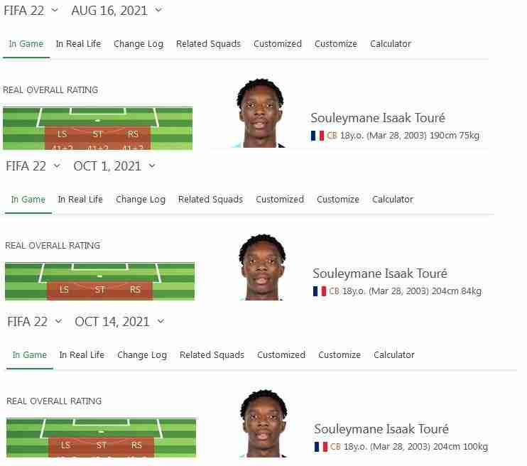 Sul giovane difensore c’è da evidenziare anche un particolare curioso. Nel primo database del gioco (datato 16 agosto) la sua altezza era di 190cm per 75kg, contro i 204 cm x 84 kg modificati dal 1° ottobre. Il peso è poi stato ritoccato a metà mese, spostato ai 100 kg tondi.