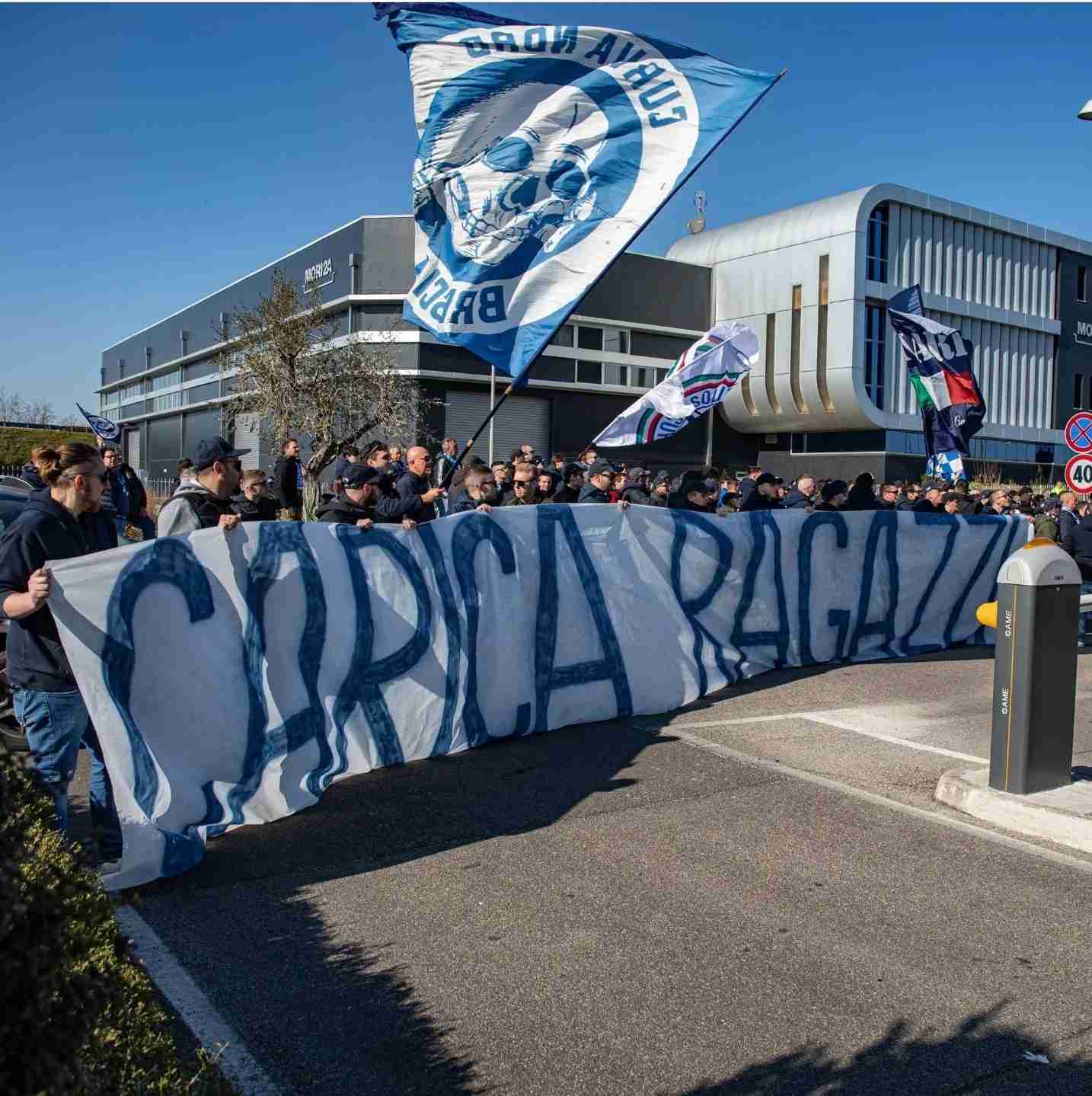Il Brescia pareggia in casa contro l’Alessandria, il Lecce pareggia contro il Benevento. Prima delle gare, entrambe le squadra hanno ricevuto l’incitamento dei tifosi. I sostenitori del Brescia hanno incitato la squadra con cori e lo striscione “carica ragazzi”. Ecco la foto