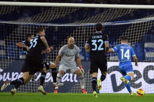 posto il famoso pallonetto dopo l’uscita di Strakosha sul movimento in profondità del belga. La palla finisce vicino alla linea del fallo laterale, Mertens non guarda nemmeno la porta o se sta arrivando qualche compagno in area per un assist: tiro di prima, parabola imprendibile e pallone in porta. Il belga esulta sorridendo con un’alzata di spalle, come se fosse la cosa più ovvia del mondo quello che ha fatto e mimando il gesto di un bicchiere svuotato: facile come bere un bicchiere d’acqua, no? Al primo posto, invece, un gol che è il compendio di tutte le sue qualità: sempre Lazio spettatrice passiva delle sue prodezze. Al primo