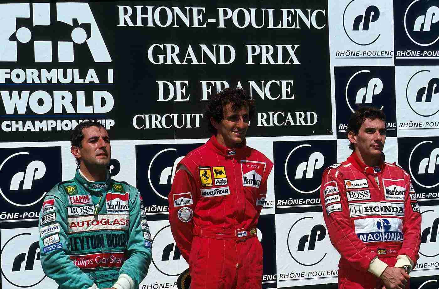 Facendo un ventennale salto in avanti, arriviamo al 1990. Un anno in cui, l’8 luglio, l’Italia ha gli occhi puntati sullo Stadio Olimpico di Roma, per la finale dei Mondiali di calcio tra Germania Ovest e Argentina. Gli azzurri avevano deluso ogni aspettativa, perdendo ai rigori l’accesso alla tanto sognata finale. A rincuorare gli animi tricolore, durante quel caldo pomeriggio estivo, ci pensa la Nazionale a motori, che centra la sua centesima vittoria in Formula 1. Lo fa sul tracciato di Le Castellet, in occasione del Gran Premio di Francia, settimo appuntamento in calendario. La Ferrari dispone della 641, una monoposto molto competitiva, affidata al Campione in carica ex McLaren Alain Prost e a Nigel Mansell, un pilota d’attacco già schierato dalla Casa del Cavallino nella stagione precedente. Ancora una volta, è la McLaren l’avversaria da battere, con Ayrton Senna e l’ex ferrarista Gerhard Berger. Mansell conquista la pole, davanti le McLaren e l’altra Ferrari. Dietro segue un trio tutto italiano con la Benetton di Alessandro Nannini, la Williams di Riccardo Patrese e la Leyton-House di Ivan Capelli. Allo spegnimento dei semafori Berger brucia Mansell, imitato al secondo giro da Senna. Alle spalle del Leone inglese si danno battaglia Nannini e Patrese, Prost e la Williams di Boutsen, quest’ultimo poi costretto al ritiro all’ottavo giro. Quando tutti i piloti davanti rientrano ai box per il cambio gomme, le Leyton-House di Capelli e Gugelmin restano in pista e, con un buon passo gara, balzano al comando. Al quarantacinquesimo giro, il motore Judd V8 di Gugelmin va in fumo. Al nostro Ivan, dunque, il compito e l’onore di difendere la prima posizione su Prost, che insegue con sette secondi di distacco. Le efficienti gomme nuove offrono al francese in rosso l’opportunità di avvicinarsi sempre più a Capelli che, nell’angusto abitacolo progettato da Newey e con il caldo torrido, soffre le pene dell’inferno. “Le Professeur” recupera terreno senza correre rischi. Invece, il vero problema di Ivan è il suo motore che, a qualche giro dal termine, inizia ad emettere sinistri borbottii. Deve rallentare, se vuole concludere la corsa. A due giri dal termine, Prost lo sorpassa e conclude in testa, regalando alla Ferrari la sua centesima vittoria a quasi quarant’anni di distanza dal suo primo successo nella massima serie.