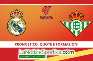 Real Madrid – Betis Pronostico aggiornato al 1 Settembre 2024, ore 21:30 – 1/Under 2.5/1X, NoGoal, Probabili formazioni e quote. Info e il pronostico di Real Madrid – Betis Ultimo precedente in Primera Division: Real Madrid 0-0 Betis; Luogo: Estadio Santiago Bernabeu, Madrid (Spagna); Data: Domenica 1 Settembre 2024; Ora: 21.30; Percentuali: vittoria Real Madrid 60%, pareggio 30%, vittoria Betis 10%; Primo tempo finale: X // (0-0); Multigol totale: 1-2 Goal; Handicap Asiatico: Real Madrid -1; Pronostico: 1 // Under 2.5 // 1X; Pronostico Goal/NoGoal: NoGoal; Previsione risultato: Real Madrid 1-0 Betis. REAL MADRID-BETIS: BLANCOS A CACCIA DEL RISCATTO, ANDALUSI …