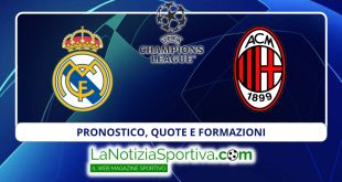 Real Madrid – Milan Pronostico aggiornato al 5 Novembre 2024, ore 21:00 – 1/Over 2.5/1X, Goal, Probabili formazioni e quote. INTRODUZIONE ALLA PARTITA Ultimo precedente in Amichevole: Milan 1-0 Real Madrid; Luogo: Estadio Santiago Bernabeu, Madrid (Spagna); Data: Martedì 5 Novembre 2024; Ora: 21.00; Percentuali: vittoria Real Madrid 69%, pareggio 21%, vittoria Milan 15%. PRONOSTICO E STRATEGIE DI GIOCO Primo tempo finale: 1 // (2-0); Multigol totale: 2-4 Goal; Handicap Asiatico: Real Madrid -1.5; Pronostico: 1 // Over 2.5 // 1X; Pronostico Goal/NoGoal: Goal; Previsione risultato: Real Madrid 3-1 Milan. LA SITUAZIONE DELLE DUE SQUADRE Real Madrid-Milan, notte da brividi: …