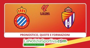 Scopri il pronostico di Espanyol – Valladolid, con probabili formazioni, quote aggiornate e statistiche per la sfida del 17 gennaio 2025, ore 21:00. INTRODUZIONE ALLA PARTITA Ultimo precedente in Primera Division: Valladolid 1-0 Espanyol; Luogo: RCDE Stadium, Barcellona (Spagna); Data: Venerdì 17 Gennaio 2025; Ora: 21.00; Percentuali: vittoria Espanyol 48%, pareggio 28%, vittoria Valladolid 24%. PRONOSTICO E STRATEGIE DI GIOCO Multigol totale: 1 + Multigol 2-3; Handicap Asiatico: Espanyol -0.5; Pronostico: 1 // Over 2.5 // 1X; Pronostico Goal/NoGoal: Goal; Previsione risultato: Espanyol 2-1 Valladolid. LA SITUAZIONE DELLE DUE SQUADRE In un venerdì sera che si preannuncia elettrizzante, l’Espanyol ospita …