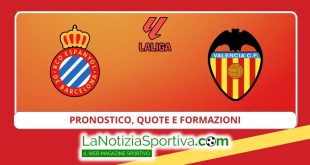 Scopri il pronostico di Espanyol – Valencia, con probabili formazioni, quote aggiornate e statistiche per la sfida del 18 dicembre 2024, ore 21:30. INTRODUZIONE ALLA PARTITA Ultimo precedente in Primera Division: Valencia 2-2 Espanyol; Luogo: RCDE Stadium, Barcellona (Spagna); Data: Mercoledì 18 Dicembre 2024; Ora: 21.30; Percentuali: vittoria Espanyol 35%, pareggio 40%, vittoria Valencia 25%. PRONOSTICO E STRATEGIE DI GIOCO Primo tempo finale: X // (0-0); Multigol totale: 1-3 Goal; Handicap Asiatico: Espanyol -0.25 // Valencia +0.5; Pronostico: X // Under 2.5 // 1X; Pronostico Goal/NoGoal: Goal; Previsione risultato: Espanyol 1-1 Valencia. LA SITUAZIONE DELLE DUE SQUADRE Espanyol-Valencia, sfida salvezza …