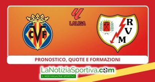 Scopri il pronostico di Villarreal – Rayo Vallecano, con probabili formazioni, quote aggiornate e statistiche per la sfida del 18 dicembre 2024, ore 21:30. INTRODUZIONE ALLA PARTITA Ultimo precedente in Primera Division: Villarreal 3-0 Rayo Vallecano; Luogo: Estadio de la Ceramica, Vila-real (Spagna); Data: Mercoledì 18 Dicembre 2024; Ora: 21.30; Percentuali: vittoria Villarreal 50%, pareggio 30%, vittoria Rayo Vallecano 20%. PRONOSTICO E STRATEGIE DI GIOCO Primo tempo finale: 1 // (1-0); Multigol totale: 2-4 Goal; Handicap Asiatico: Villarreal -0.5 // Rayo Vallecano +1.0; Pronostico: 1 // Over 2.5 // 1X; Pronostico Goal/NoGoal: Goal; Previsione risultato: Villarreal 2-1 Rayo Vallecano. LA …