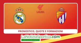 Real Madrid – Valladolid Pronostico aggiornato al 25 Agosto 2024, ore 17:00 – 1/Over 2.5/1X, NoGoal, Probabili formazioni e quote. Info e il pronostico di Real Madrid – Valladolid Ultimo precedente in Primera Division: Real Madrid 6-0 Valladolid; Luogo: Estadio Santiago Bernabeu, Madrid (Spagna); Data: Domenica 25 Agosto 2024; Ora: 17.00; Percentuali: vittoria Real Madrid 70%, pareggio 20%, vittoria Valladolid 10%; Primo tempo finale: 1 // (1-0); Multigol totale: 2-4 Goal; Handicap Asiatico: Real Madrid -1.5; Pronostico: 1 // Over 2.5 // 1X; Pronostico Goal/NoGoal: NoGoal; Previsione risultato: Real Madrid 3-0 Valladolid. REAL MADRID-VALLADOLID: BLANCOS A CACCIA DEL RISCATTO SENZA …