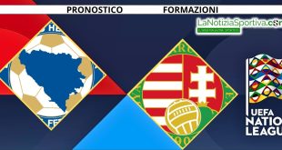 Bosnia Erzegovina – Ungheria Pronostico aggiornato al 14 Ottobre 2024, ore 20:45 – X/Under 2.5/1X, Goal, Probabili formazioni e quote. Info e il pronostico di Bosnia Erzegovina – Ungheria Ultimo precedente in Nations League: Ungheria 0-0 Bosnia Erzegovina; Luogo: Stadio Bilino Polje, Zenica (Bosnia Erzegovina); Data: Lunedì 14 Ottobre 2024; Ora: 20.45; Percentuali: vittoria Bosnia Erzegovina 35%, pareggio 40%, vittoria Ungheria 25%; Primo tempo finale: X // (0-0); Multigol totale: 1-2 Goal; Handicap Asiatico: Bosnia Erzegovina +0.25; Ranking FIFA Men’s: Bosnia Erzegovina (75), Ungheria (32); Pronostico: X // Under 2.5 // 1X; Pronostico Goal/NoGoal: Goal; Previsione risultato: Bosnia Erzegovina 1-1 …