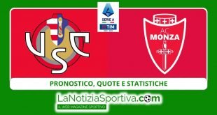 Cremonese-Monza è una delle partite della diciottesima giornata di Serie A e si gioca sabato alle 15:00: statistiche, probabili formazioni, pronostici, diretta tv e streaming. POTREBBE INTERESSARTI ANCHE —> IL PRONOSTICO DI LECCE – MILAN Info e il pronostico di Cremonese – Monza Ultimo precedente in Serie B: Cremonese 3-2 Monza (esito indovinato); Luogo: Stadio Giovanni Zini, Cremona (Italia); Data: Sabato 14 Gennaio 2023; Ora: 15.00; Pronostico: 2 // Over 2.5 // X2; Pronostico Gol/NoGol: Gol; Previsione risultato: Cremonese 1-2 Monza; TV e Streaming: DAZN e ZONA DAZN (canale 214 Sky). Cremonese vs. Monza – quote sull’esito, statistiche e probabili …